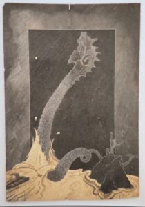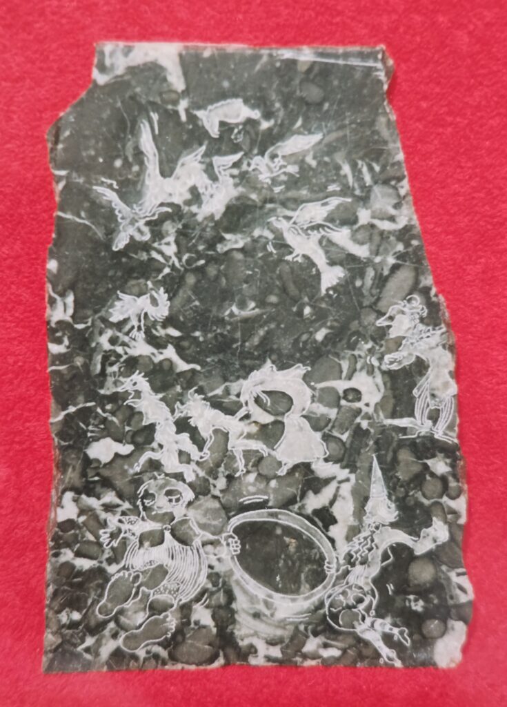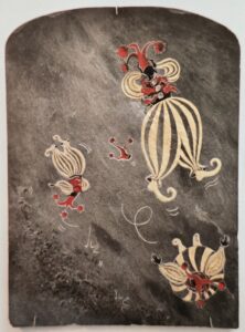 gravure et peinture sur ardoise. Provenance : toiture de la cathédrale de Cambrai (F)