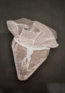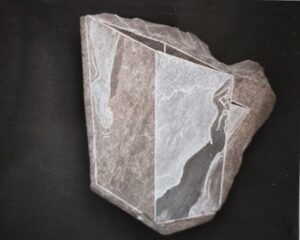 These stones carry a spiritual memory prior to any image. Wear, fossils, strata, traces of rain and frost make up a silent writing. It is about reading it, not correcting it. Looking at these slates is entering a slow time, where the material itself becomes language.