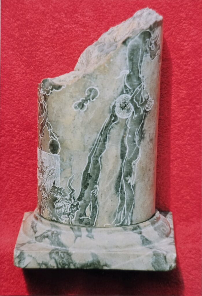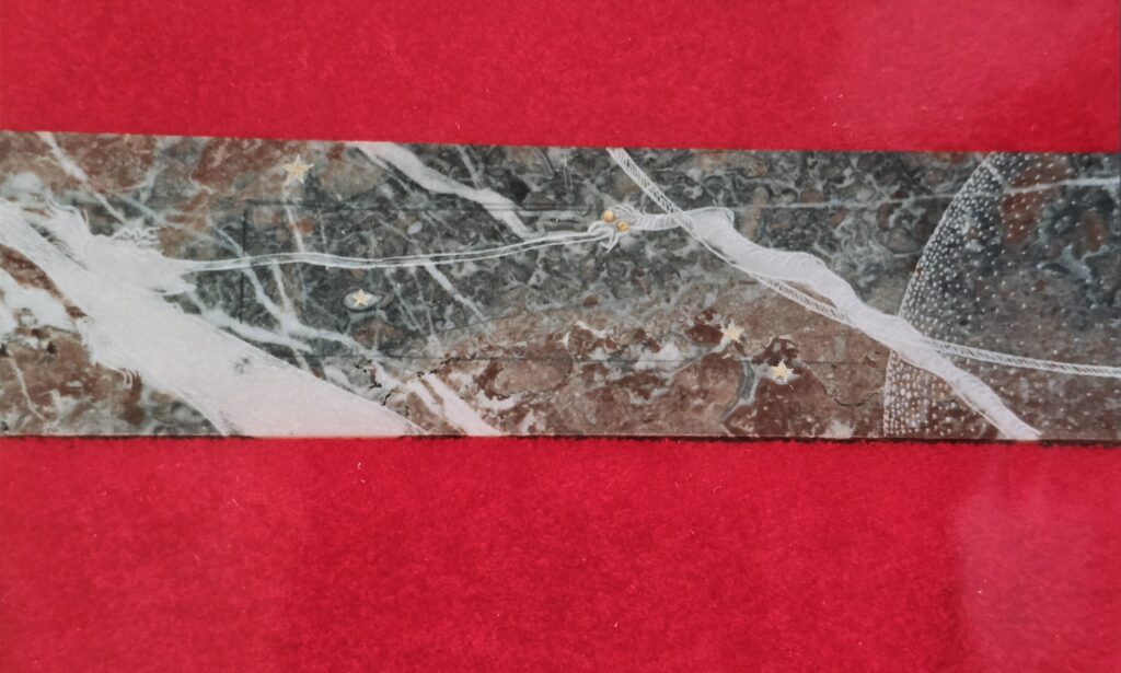 The artistic gesture is not affirmation but listening. Engraving, painting, amounts to standing in attention, responding to what has already been submitted. Each intervention extends a sacred vocation, like a prayer whispered in stone.