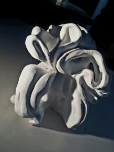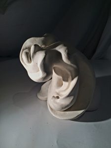 Art Nouveau retrouvé : ces entrelacs organiques, ces formes douces qui s’enlacent évoquent irrésistiblement l’esthétique 1900. Non par citation stylistique mais par reconnexion à la même source : l’intelligence organique du vivant. Quand mon mental se tait, la main retrouve spontanément les courbes des lianes, des vagues, des embryons. Noir brillant / Blanc mat : dualité lunaire. Le noir capte toute la lumière mais reflète le cosmos comme un miroir d’obsidienne. Le blanc absorbe, apaise, et offre le silence. Deux expressions de la même énergie contemplative figée dans la matière. Présences : elles habitent l’espace plutôt qu’elles ne le décorent. Entités silencieuses qui semblent respirer, dialoguer entre elles. Ce ne sont pas des objets mais des témoins, des vestiges solidifiés d’états de conscience où la création redevient aussi naturelle que la croissance d’une plante. La lune active, l’argile reçoit, les mains transmettent. Ces sculptures sont ce qui reste quand mon ego s’efface sous la pleine lune parisienne.