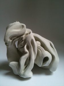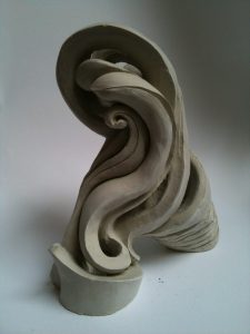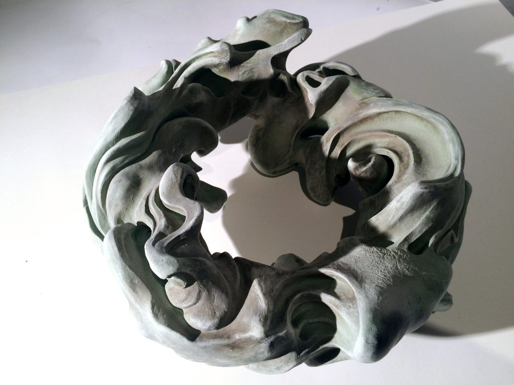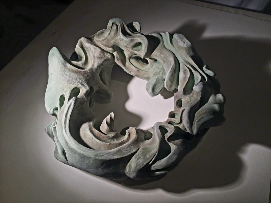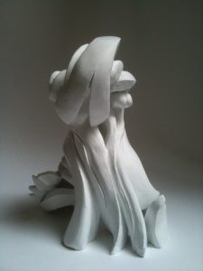 Présences d’Argiles – Série lunaire sculptures abstraites, 49 cm, argile cuite patinée 2015-2016, Paris (FR)