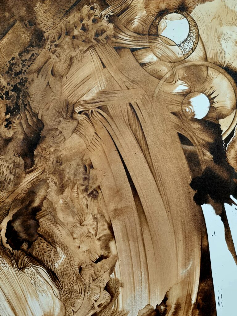 Triptych – Chronique ignée Australienne – Ink « Burnt Sienna » canvas on stretcher, 3 x 1m / 1m – 2020 PARIS