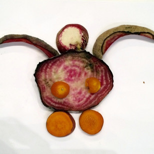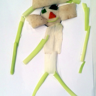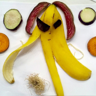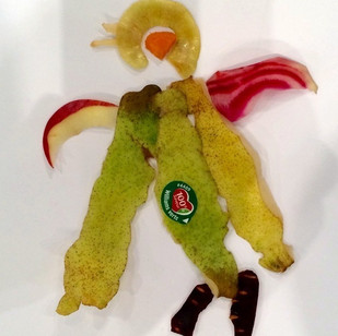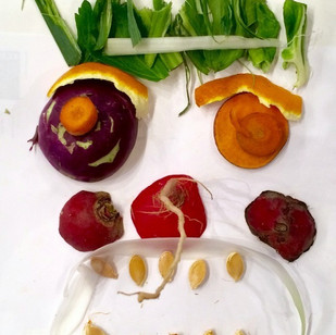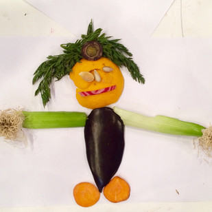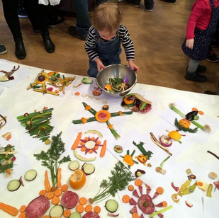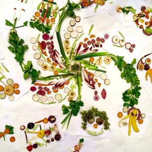 Relational Art – Workshop for kids to awake their creativity: the children draw with fruit and vegetable wastes.